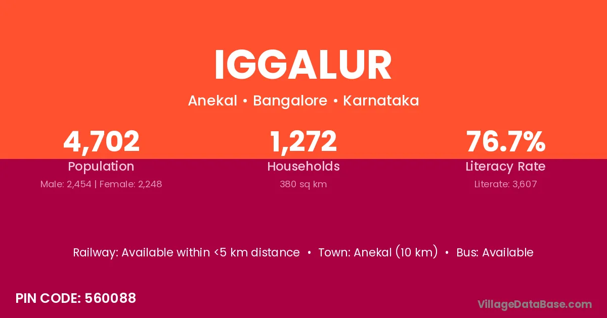 Anekal (10 km) is the nearest town to Iggalur village for major economic activities and is located approximately 10 km away.