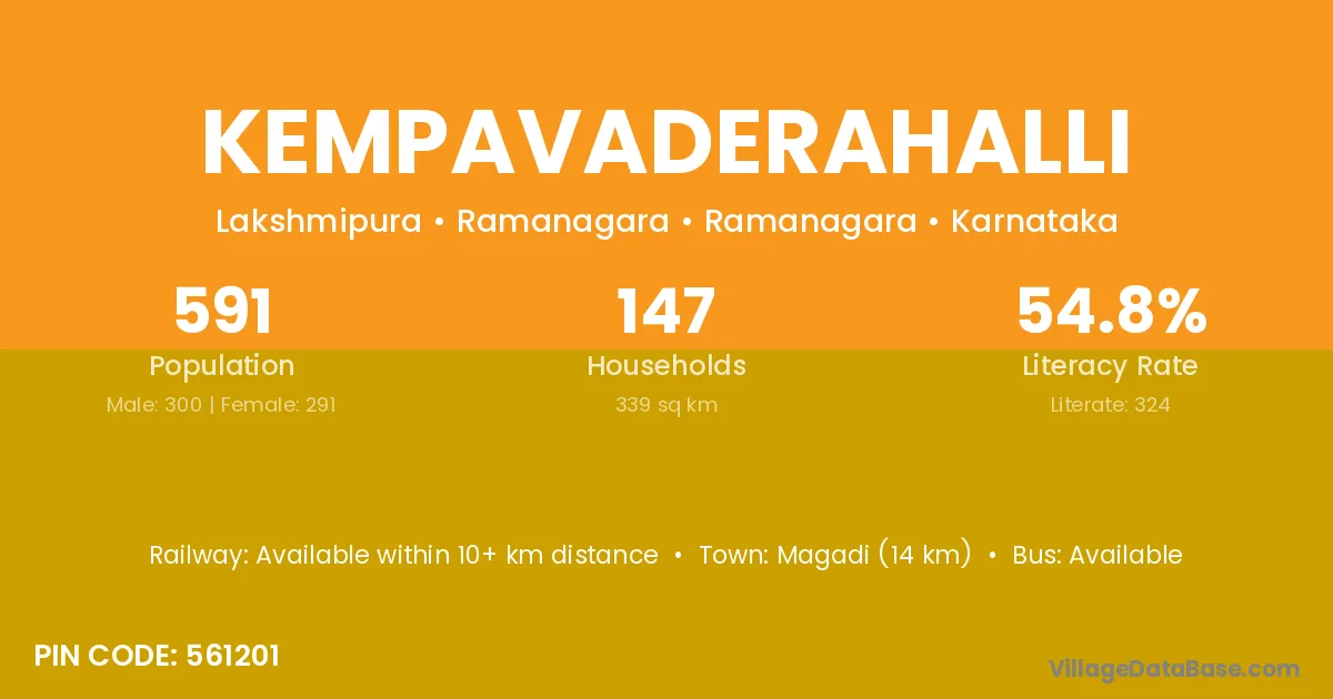 The literacy rate of Kempavaderahalli village is 55.05%. Male literacy stands at 61.81% and female literacy at 48.25%.