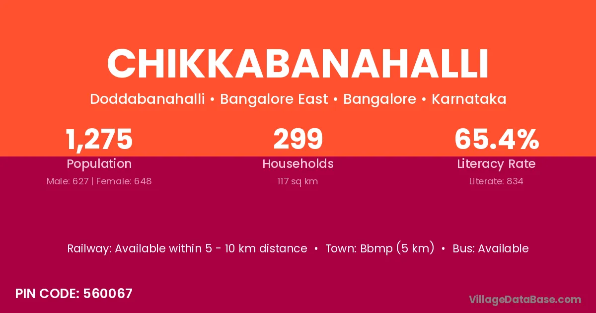 Chikkabanahalli village has a total population of 1,275 people, of which 627 are males and 648 are females.