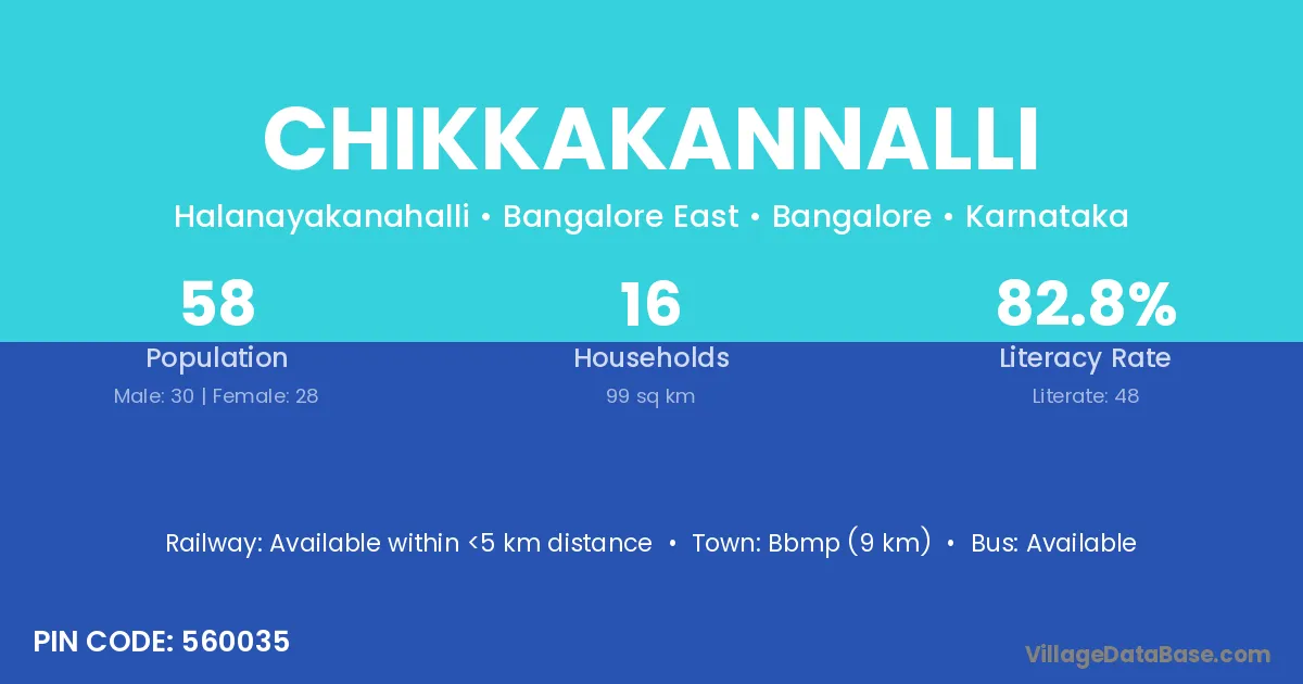 Bbmp (9 km) is the nearest town to Chikkakannalli village for major economic activities and is located approximately 9 km away.