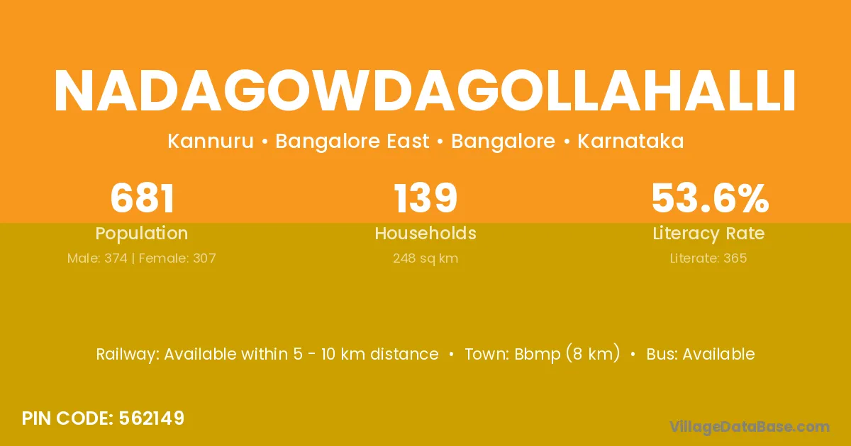 Nadagowdagollahalli village has a total population of 681 people, of which 374 are males and 307 are females.