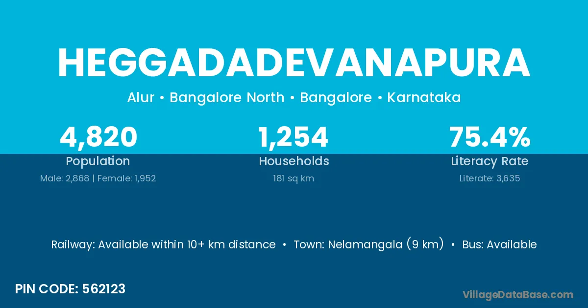 Nelamangala (9 km) is the nearest town to Heggadadevanapura village for major economic activities and is located approximately 9 km away.