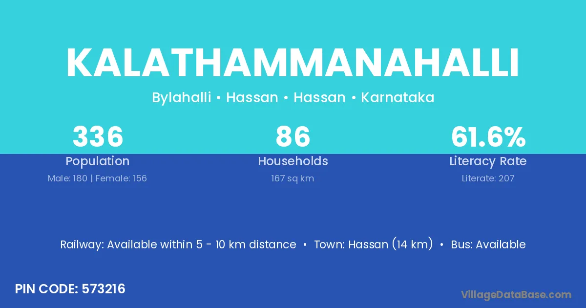 Kalathammanahalli village has a total population of 670 people, of which 336 are males and 334 are females.