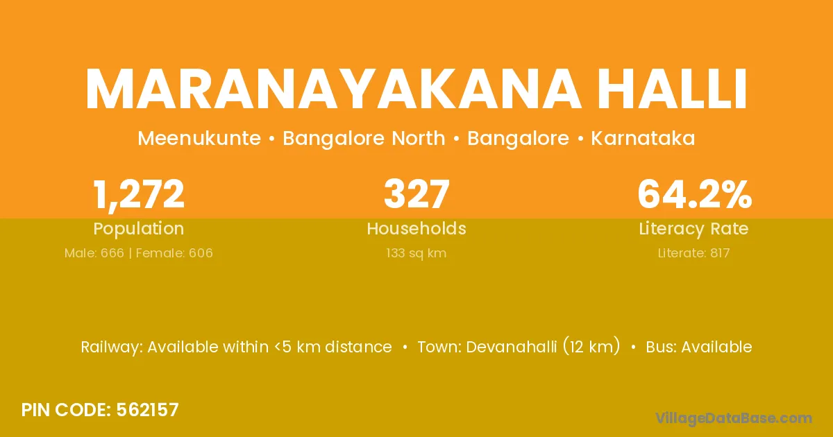 Devanahalli (12 km) is the nearest town to Maranayakana Halli village for major economic activities and is located approximately 12 km away.