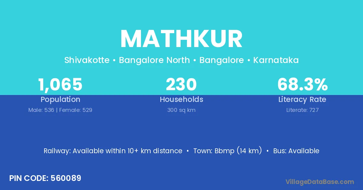 Bbmp (14 km) is the nearest town to Mathkur village for major economic activities and is located approximately 14 km away.