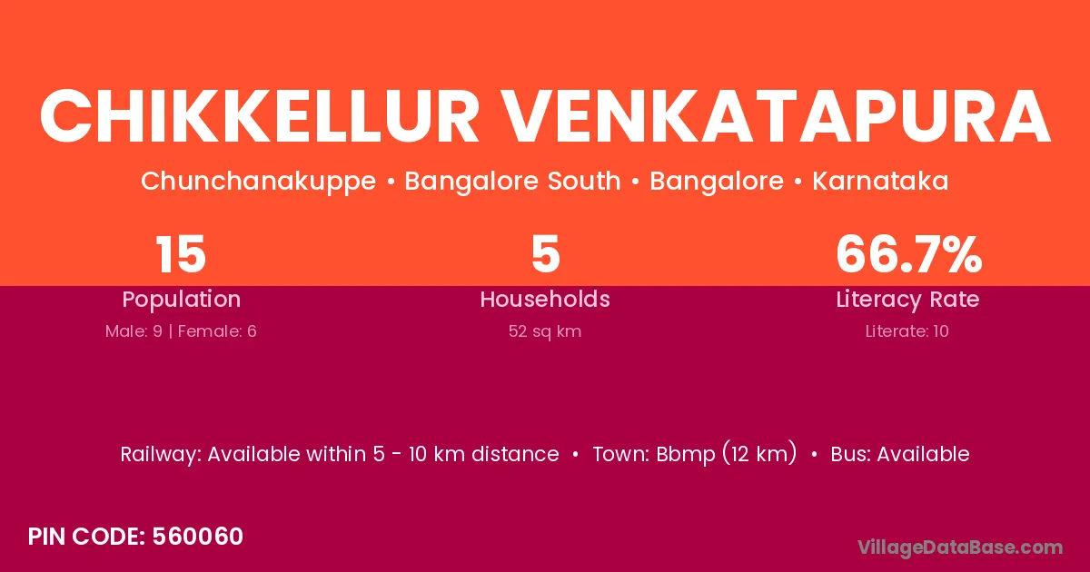 Chikkellur Venkatapura village has a total population of 15 people, of which 9 are males and 6 are females.