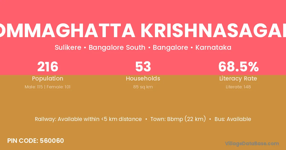 Kommaghatta Krishnasagara village has a total population of 216 people, of which 115 are males and 101 are females.