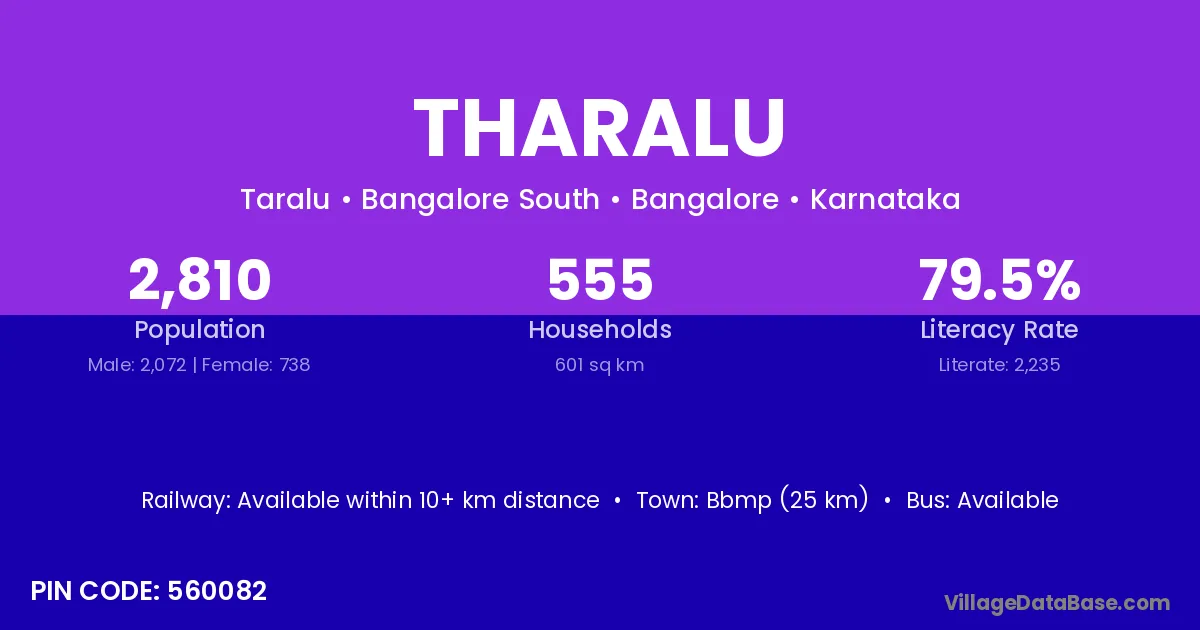 Bbmp (25 km) is the nearest town to Tharalu village for major economic activities and is located approximately 25 km away.