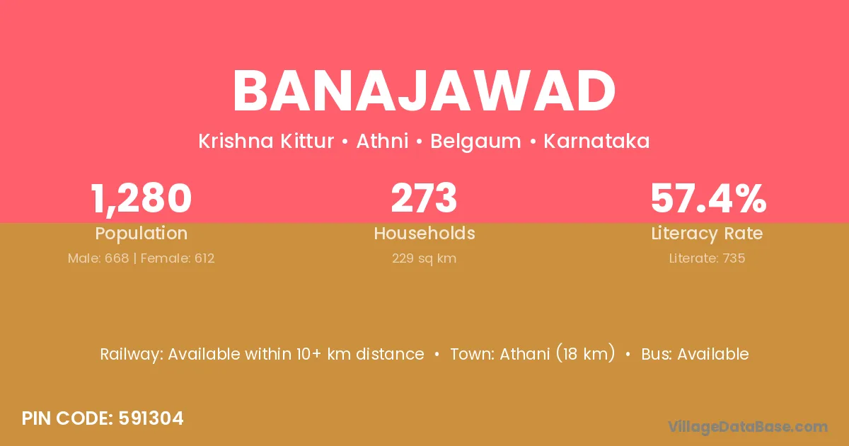 Banajawad village has a total population of 1,280 people, of which 668 are males and 612 are females.