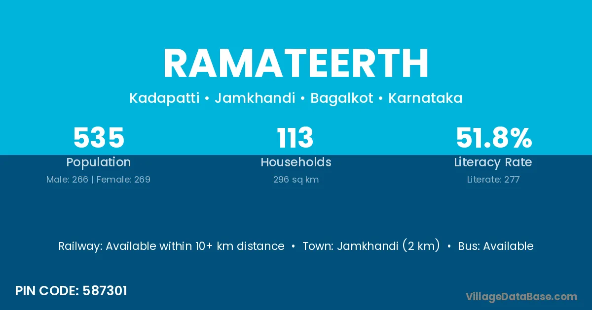 Athani (28 km) is the nearest town to Ramateerth village for major economic activities and is located approximately 28 km away.