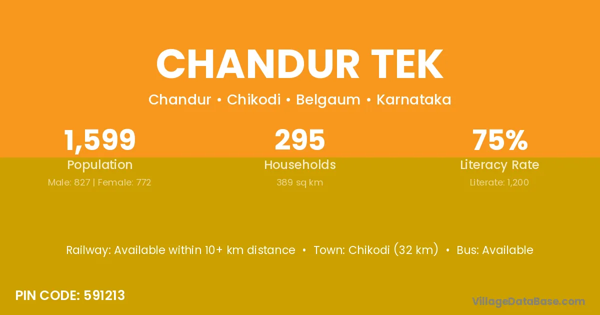 Chikodi (32 km) is the nearest town to Chandur Tek village for major economic activities and is located approximately 32 km away.