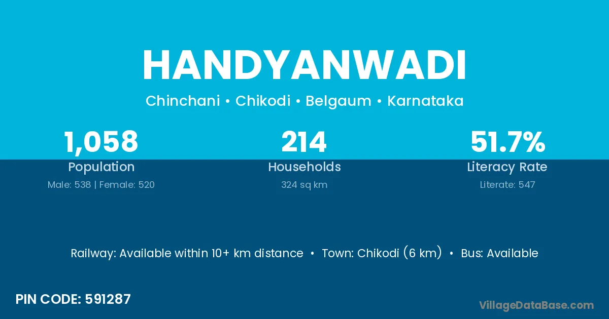 Chikodi (6 km) is the nearest town to Handyanwadi village for major economic activities and is located approximately 6 km away.