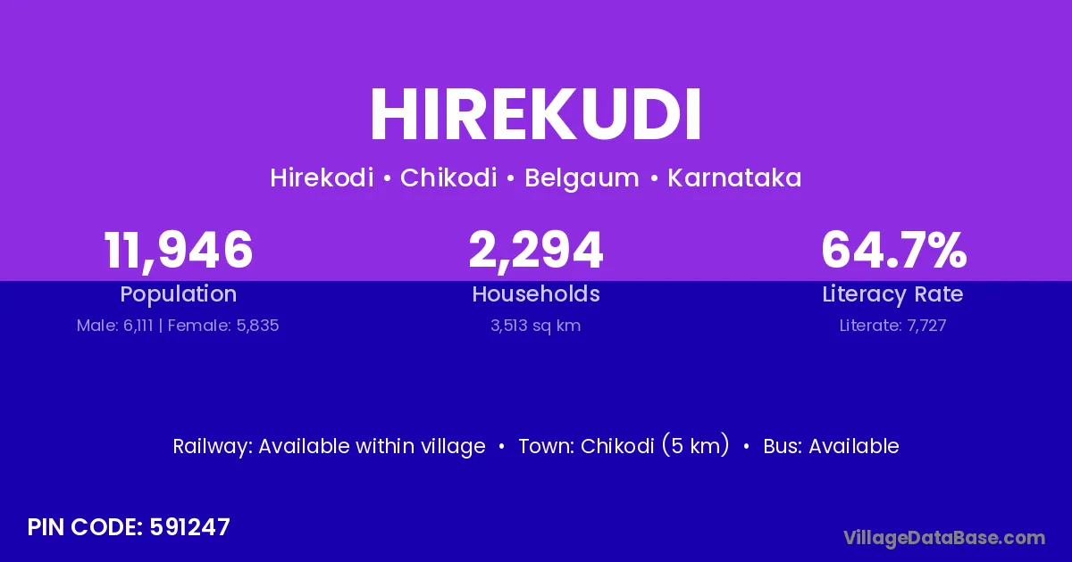 Chikodi (5 km) is the nearest town to Hirekudi village for major economic activities and is located approximately 5 km away.