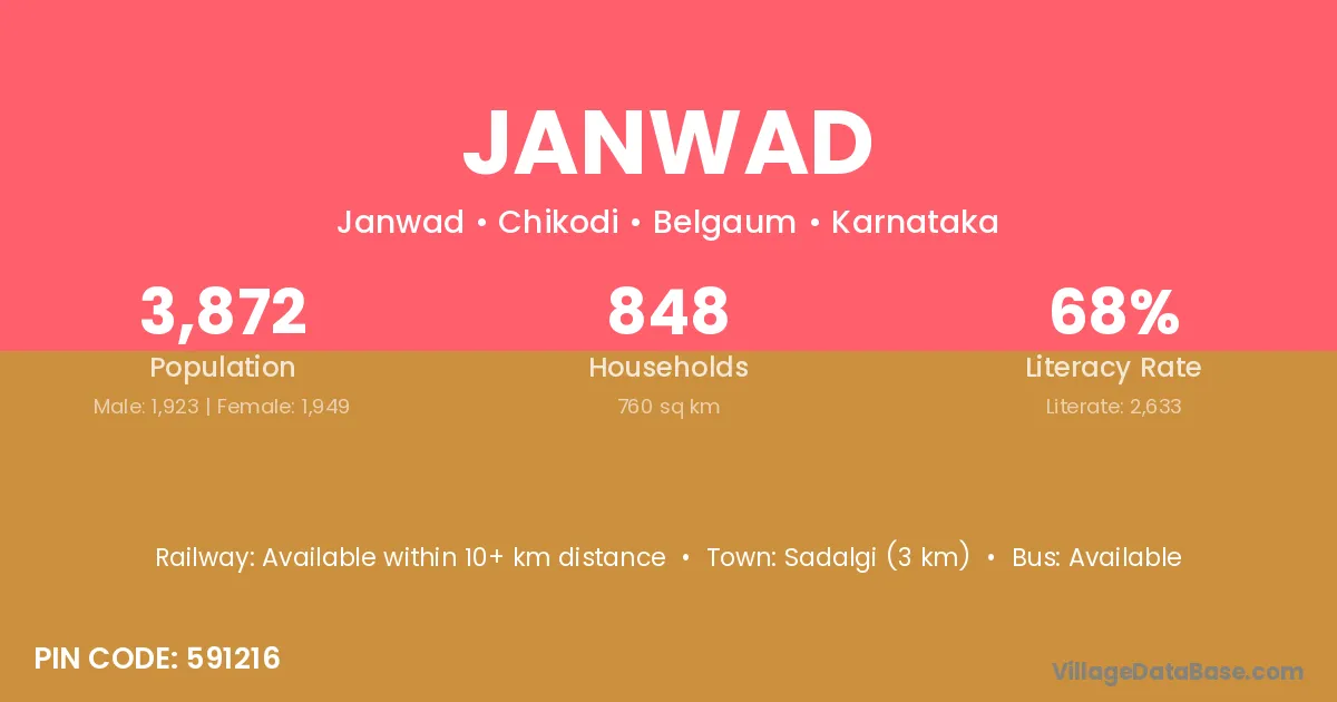 Sadalgi (3 km) is the nearest town to Janwad village for major economic activities and is located approximately 3 km away.