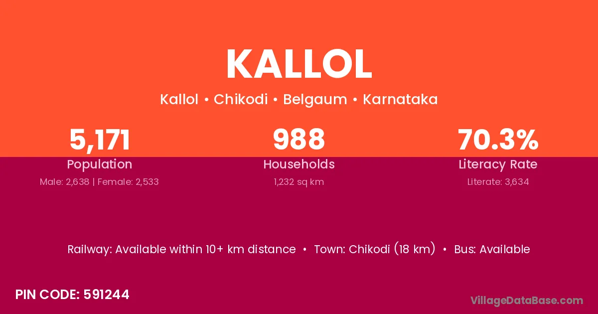 Chikodi (18 km) is the nearest town to Kallol village for major economic activities and is located approximately 18 km away.
