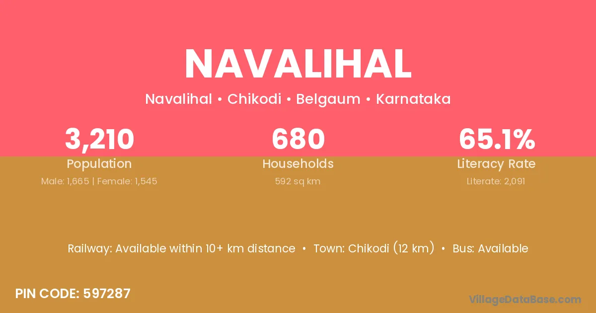Chikodi (12 km) is the nearest town to Navalihal village for major economic activities and is located approximately 12 km away.
