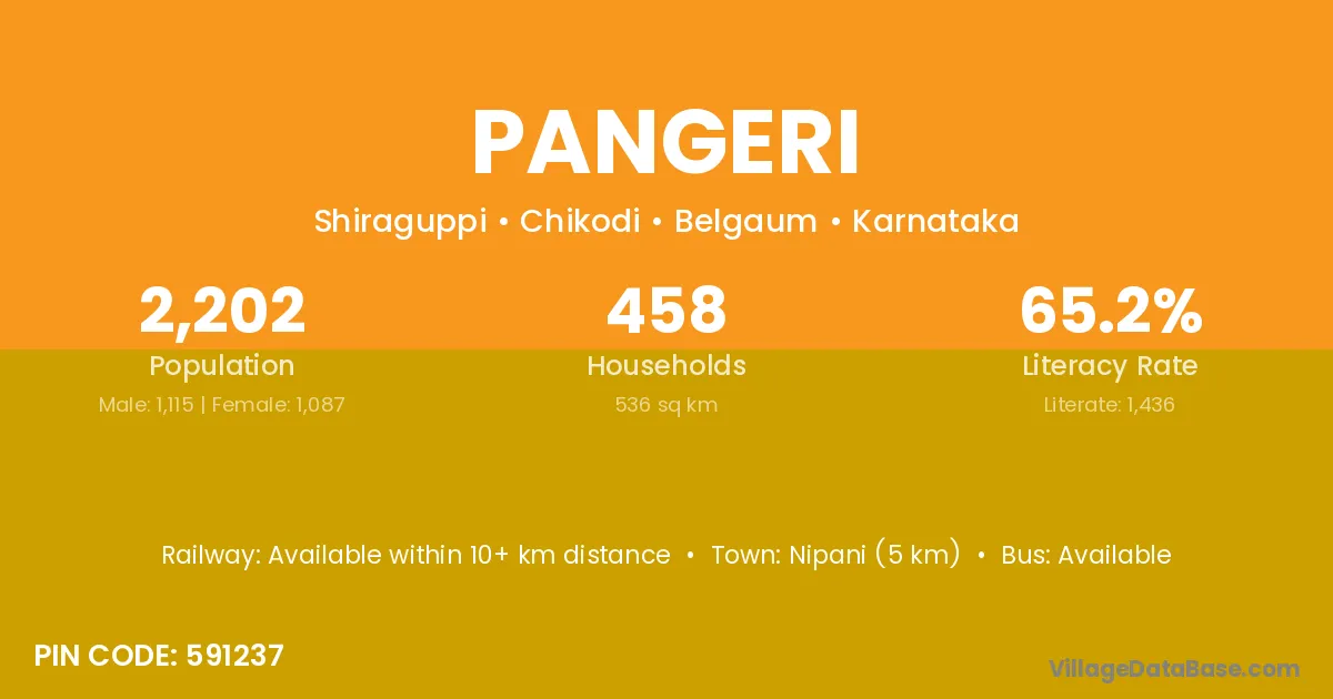 Nipani (5 km) is the nearest town to Pangeri village for major economic activities and is located approximately 5 km away.