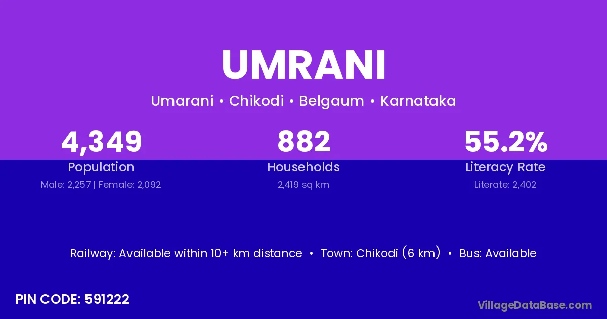 Chikodi (6 km) is the nearest town to Umrani village for major economic activities and is located approximately 6 km away.