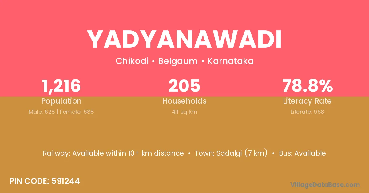Sadalgi (7 km) is the nearest town to Yadyanawadi village for major economic activities and is located approximately 7 km away.