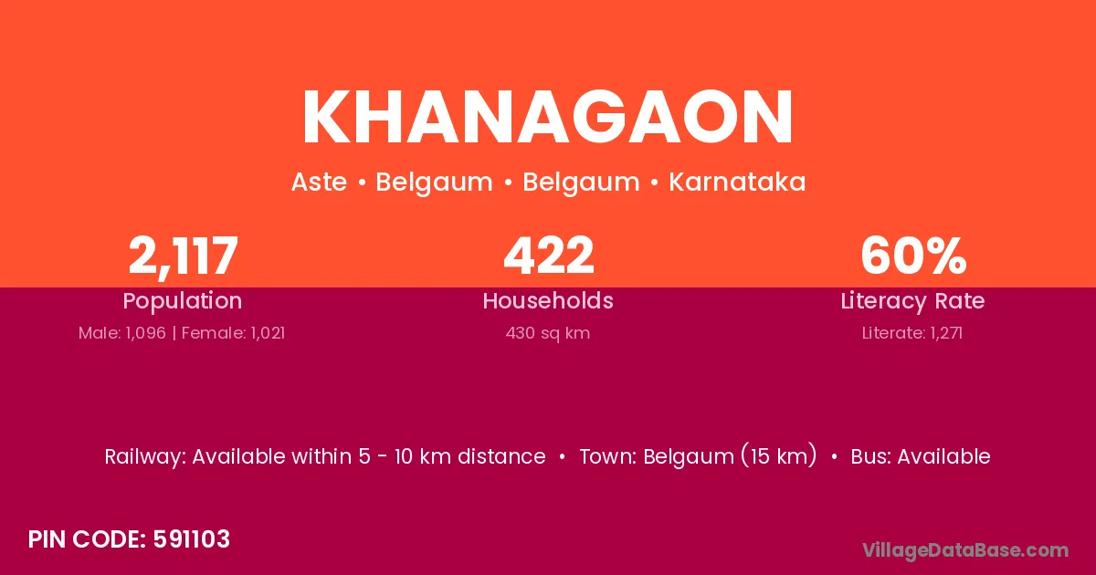 Belgaum (20 km) is the nearest town to Khanagaon village for major economic activities and is located approximately 20 km away.