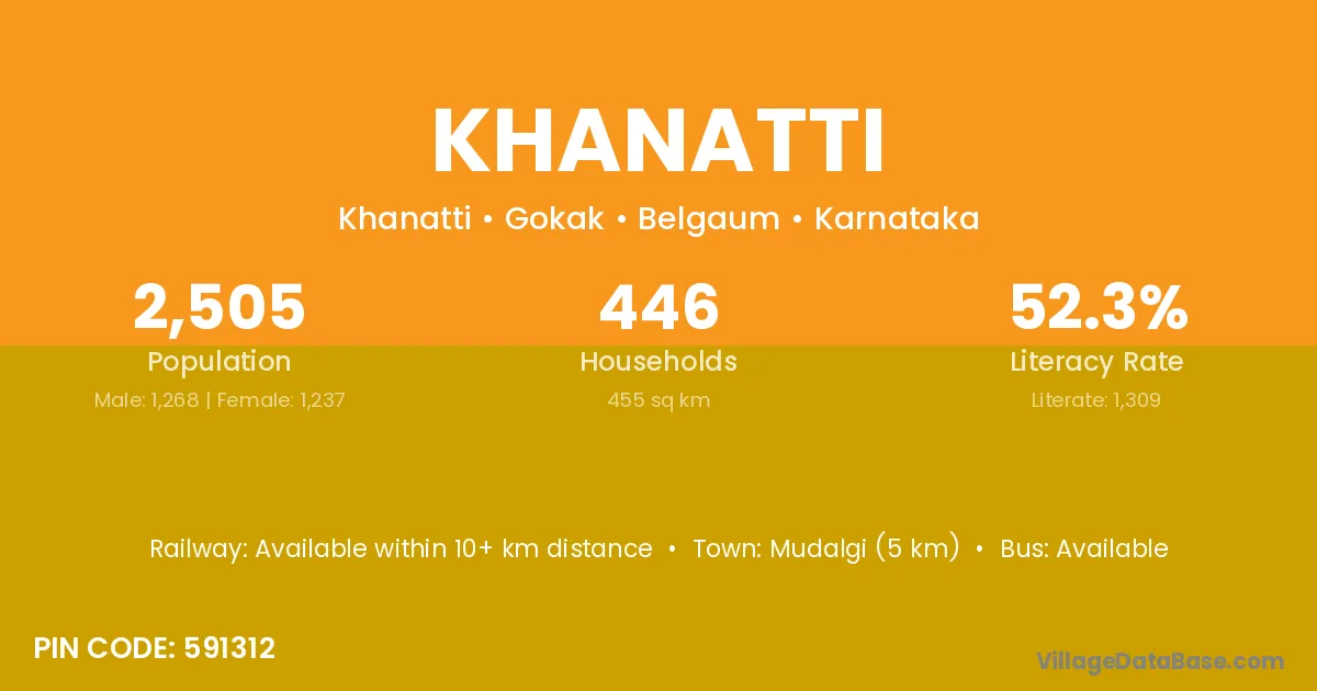 Mudalgi (5 km) is the nearest town to Khanatti village for major economic activities and is located approximately 5 km away.