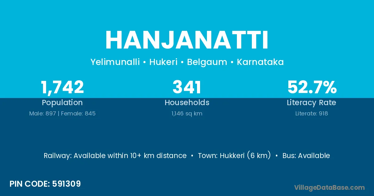 Hukkeri (6 km) is the nearest town to Hanjanatti village for major economic activities and is located approximately 6 km away.
