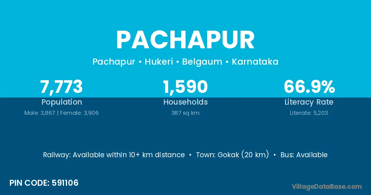 Gokak (20 km) is the nearest town to Pachapur village for major economic activities and is located approximately 20 km away.