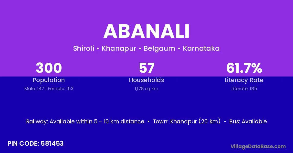 Khanapur (20 km) is the nearest town to Abanali village for major economic activities and is located approximately 20 km away.