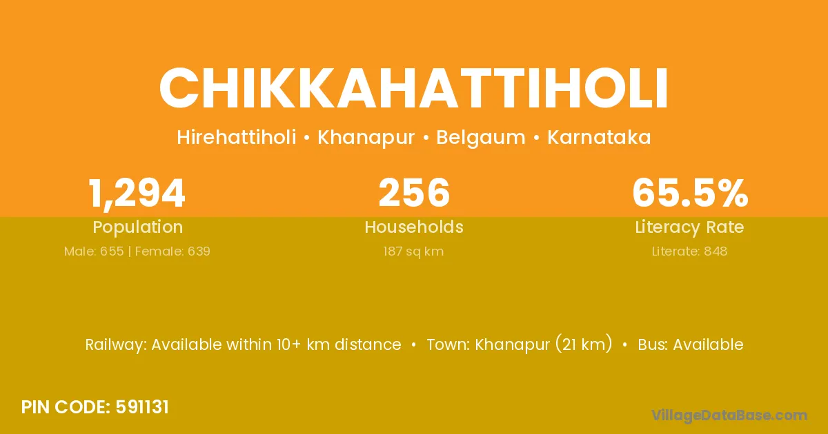 Chikkahattiholi village has a total population of 1,294 people, of which 655 are males and 639 are females.