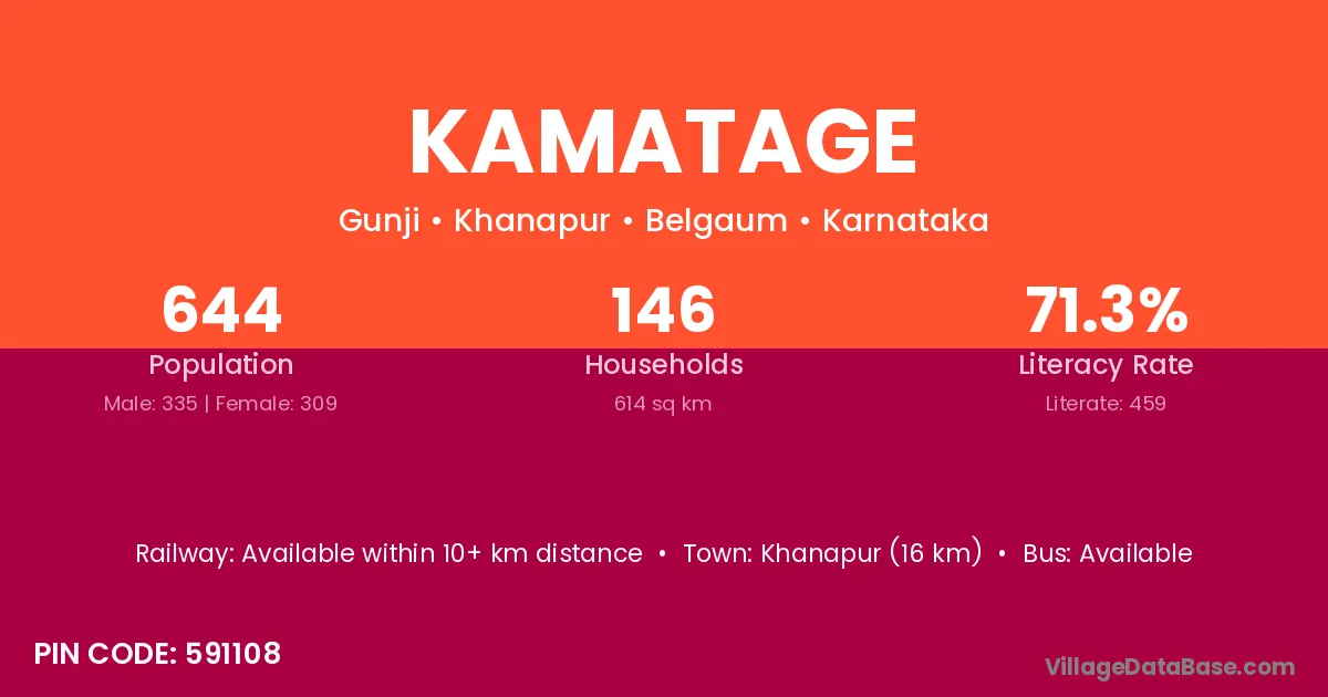 Khanapur (16 km) is the nearest town to Kamatage village for major economic activities and is located approximately 16 km away.