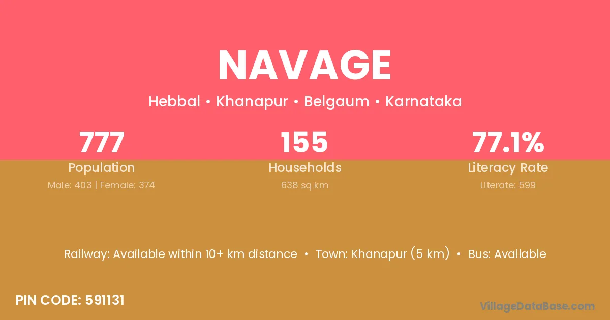 Khanapur (5 km) is the nearest town to Navage village for major economic activities and is located approximately 5 km away.