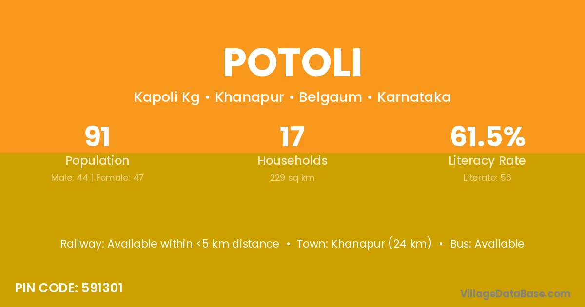 Khanapur (24 km) is the nearest town to Potoli village for major economic activities and is located approximately 24 km away.