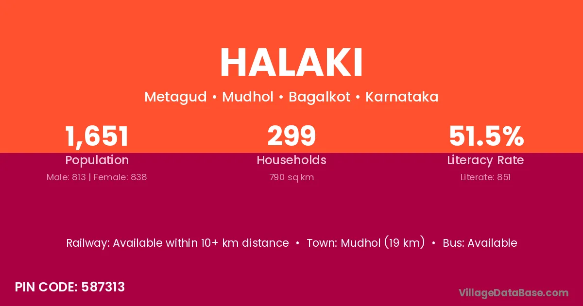 Bail Hongal (17 km) is the nearest town to Halaki village for major economic activities and is located approximately 17 km away.