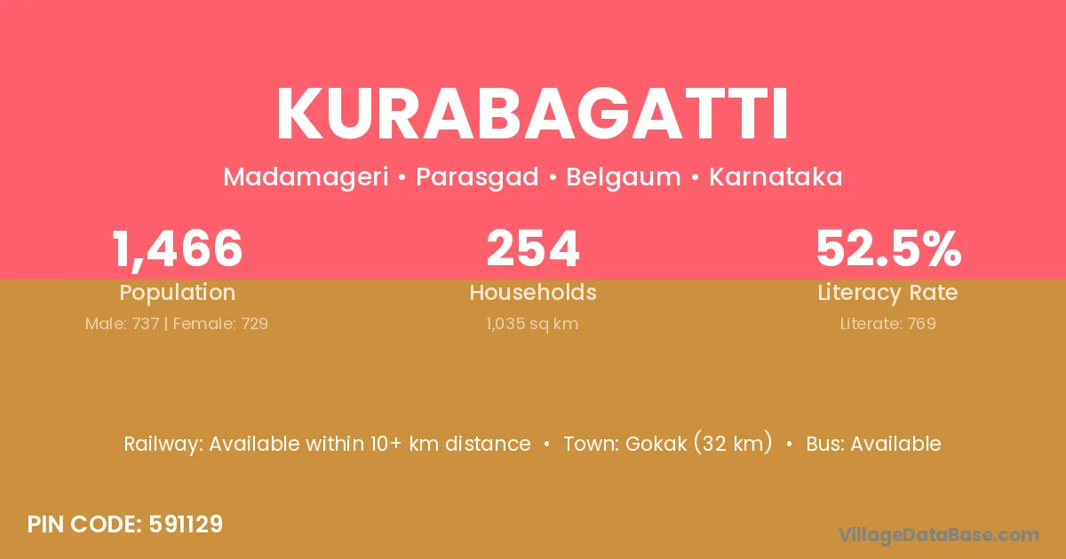 Kurabagatti village has a total population of 1,466 people, of which 737 are males and 729 are females.