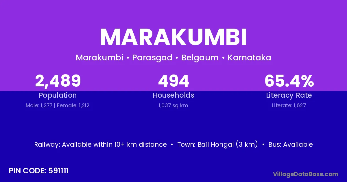 Bail Hongal (3 km) is the nearest town to Marakumbi village for major economic activities and is located approximately 3 km away.