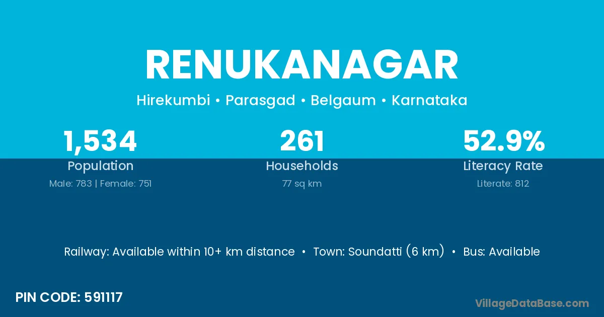 Soundatti (6 km) is the nearest town to Renukanagar village for major economic activities and is located approximately 6 km away.