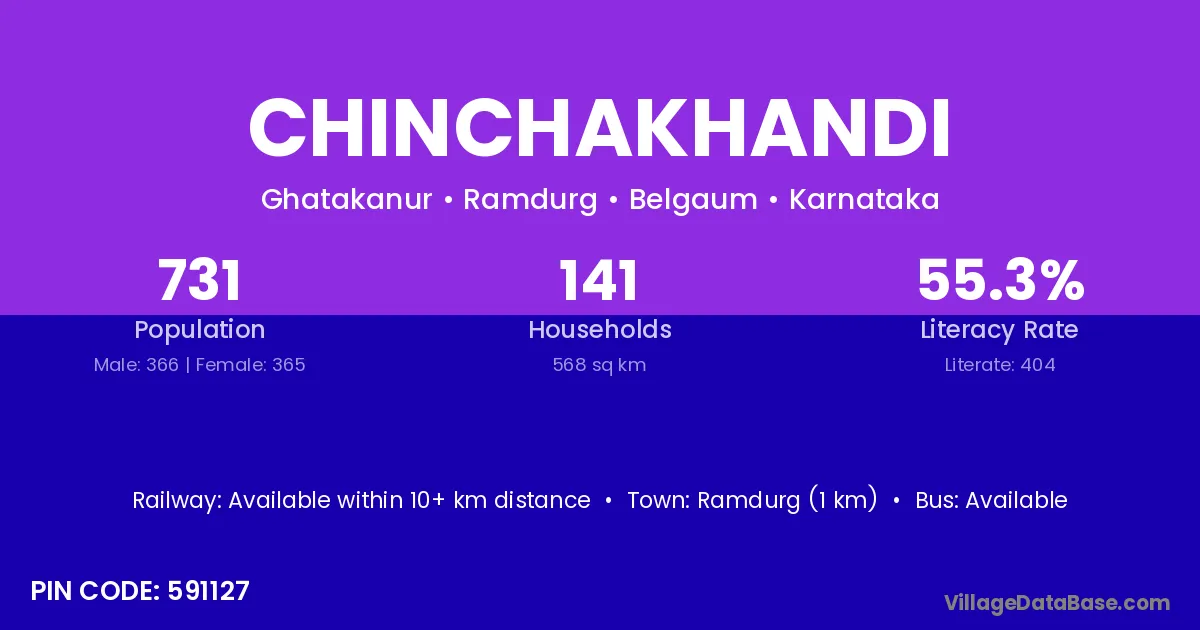 Ramdurg (1 km) is the nearest town to Chinchakhandi village for major economic activities and is located approximately 1 km away.