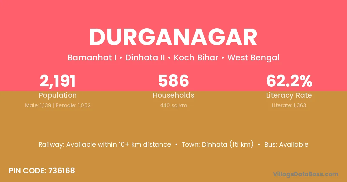 The literacy rate of Durganagar village is 37.61%. Male literacy stands at 49.57% and female literacy at 24.50%.