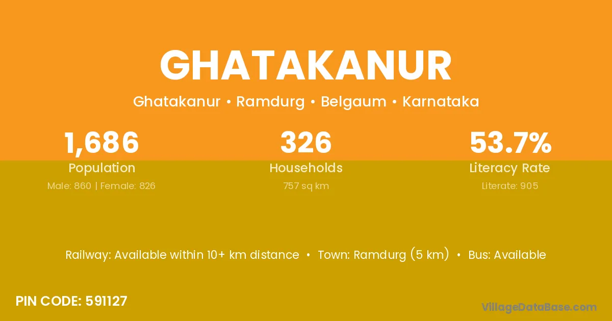 Ramdurg (5 km) is the nearest town to Ghatakanur village for major economic activities and is located approximately 5 km away.