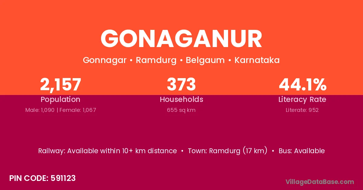 Ramdurg (17 km) is the nearest town to Gonaganur village for major economic activities and is located approximately 17 km away.