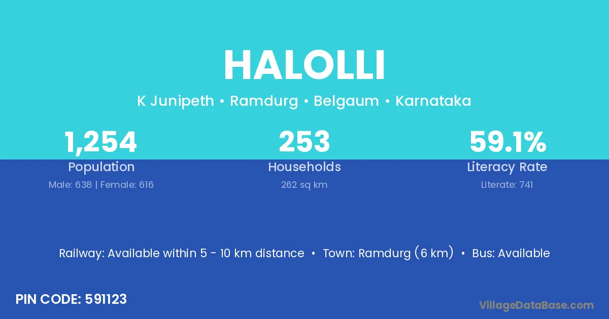 Ramdurg (6 km) is the nearest town to Halolli village for major economic activities and is located approximately 6 km away.