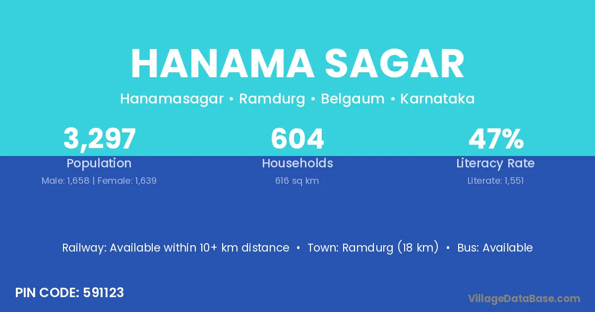 Ramdurg (18 km) is the nearest town to Hanama Sagar village for major economic activities and is located approximately 18 km away.