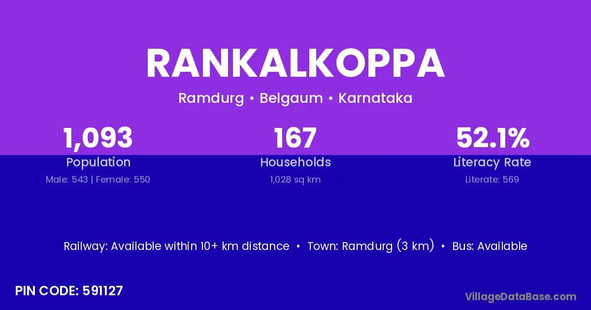 Rankalkoppa village has a total population of 1,093 people, of which 543 are males and 550 are females.