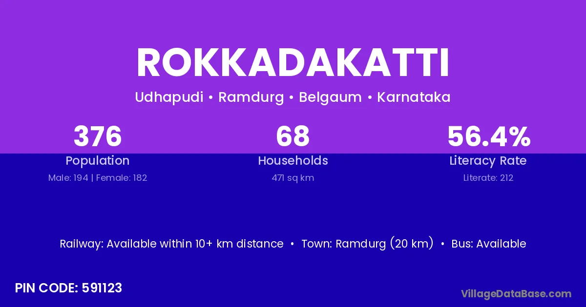 Ramdurg (20 km) is the nearest town to Rokkadakatti village for major economic activities and is located approximately 20 km away.