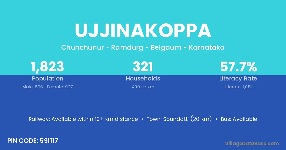 Soundatti (20 km) is the nearest town to Ujjinakoppa village for major economic activities and is located approximately 20 km away.