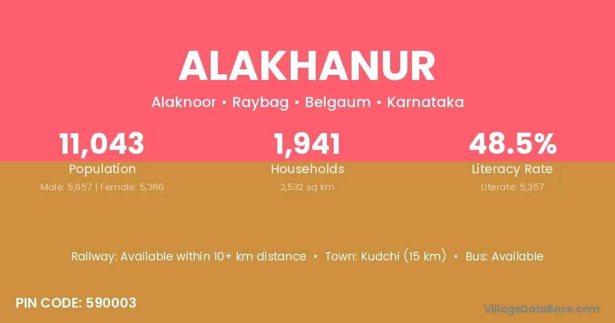 Kudchi (15 km) is the nearest town to Alakhanur village for major economic activities and is located approximately 15 km away.