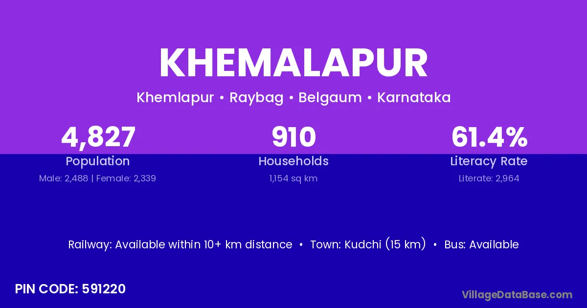 Kudchi (15 km) is the nearest town to Khemalapur village for major economic activities and is located approximately 15 km away.