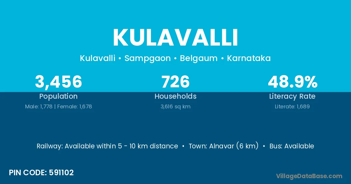 Alnavar (6 km) is the nearest town to Kulavalli village for major economic activities and is located approximately 6 km away.