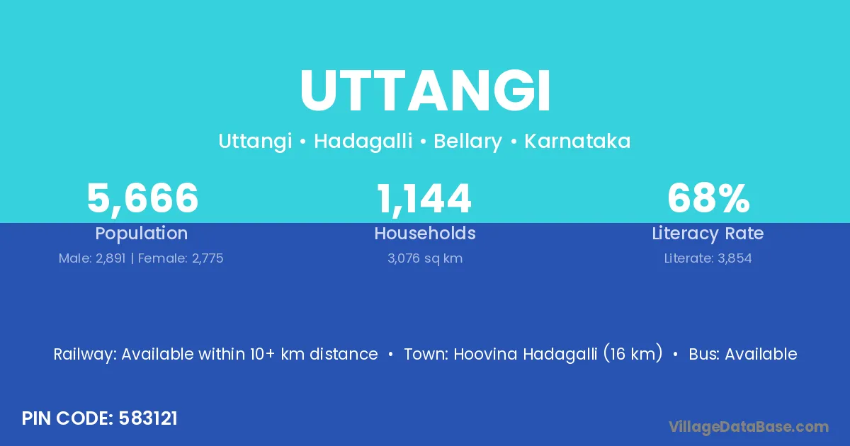 Hoovina Hadagalli (16 km) is the nearest town to Uttangi village for major economic activities and is located approximately 16 km away.