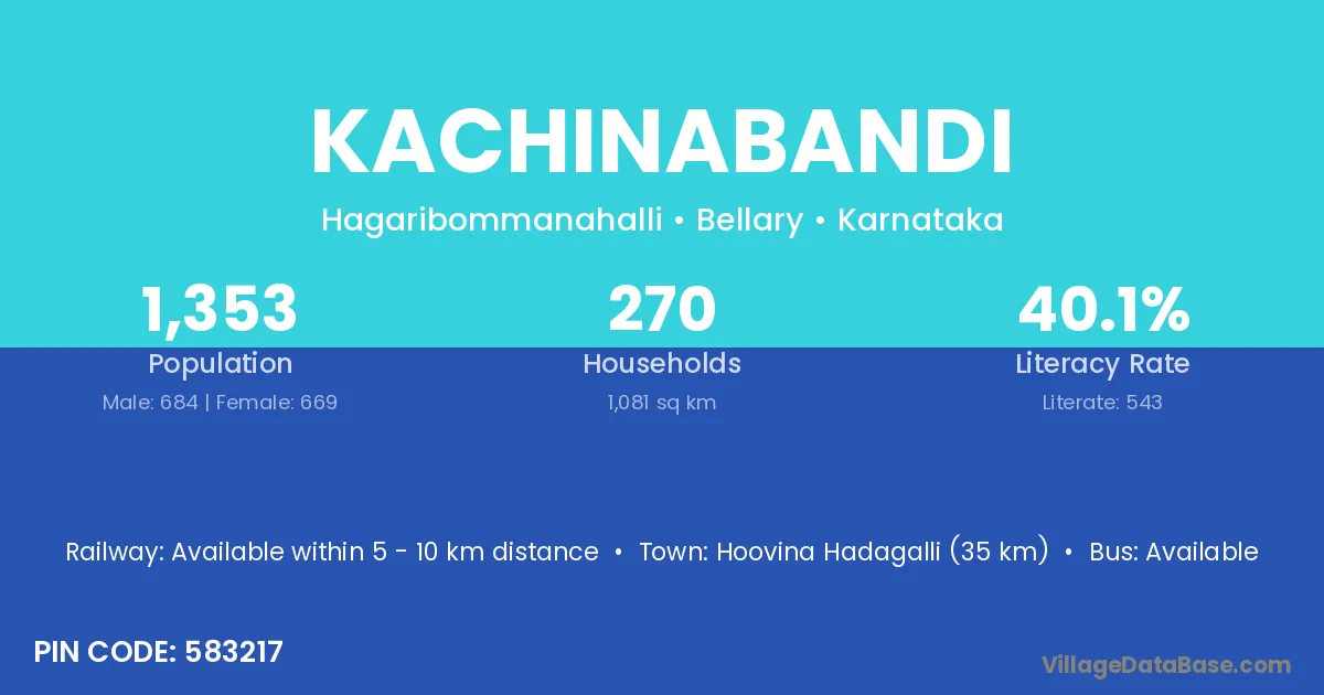 Hoovina Hadagalli (35 km) is the nearest town to Kachinabandi village for major economic activities and is located approximately 35 km away.